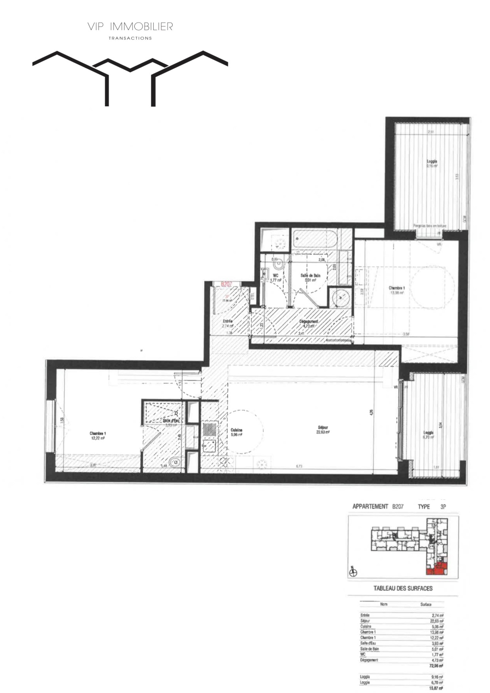Cet appartement T3 d'une superficie de 72,96 m2 se compose d'un salon salle à manger, une cuisine équipée,une chambre avec salle de douche, une chambre avec salle de bain, deux wc.